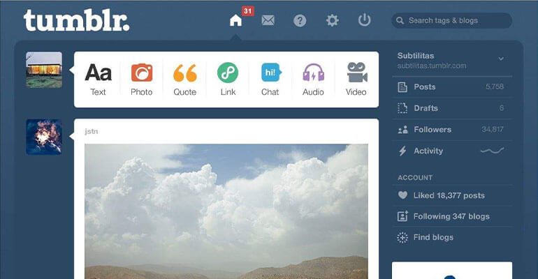 Το 2007, το Tumblr εντάχθηκε στον κατάλογο των μέσων κοινωνικής δικτύωσης. Το κοινωνικό δίκτυο που περιγράφεται ως «Το Twitter συναντά το YouTube και το WordPress» εμφανίστηκε αστραπιαία. Ο ιστότοπος επέτρεπε στους χρήστες να επιμελούνται φωτογραφίες, βίντεο και κείμενο και να κάνουν “reblog” τους φίλους τους στα “tumblelogs” τους.