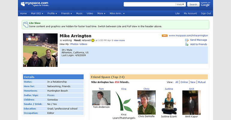 Έναν χρόνο αργότερα, το 2003, το Myspace δεν άργησε να δημιουργηθεί και να γίνει ο κύριος ανταγωνιστής του Friendster. Τα δημόσια προφίλ του ήταν ορατά σε οποιονδήποτε και ήταν η κύρια αντίθεση με τα ιδιωτικά προφίλ του Friendster που ήταν διαθέσιμα μόνο σε εγγεγραμμένους χρήστες. Το 2005 η χρήση του συγκεκριμένου ιστότοπου κορυφώθηκε, αλλά τα επόμενα χρόνια είχε πτωτική πορεία καθώς πήραν τη θέση του πιο «μοντέρνα» μέσα. Γεγονός που εξηγειται εύκολα αν αναλογιστούμε το 2004 ιδρύθηκε το γνωστό σε όλους μας Facebook. Το Facebook έχει δει εκπληκτική ανάπτυξη από το 2006 και είναι πλέον ένας από τους ιστότοπους με τις περισσότερες επισκέψεις στο διαδίκτυο.